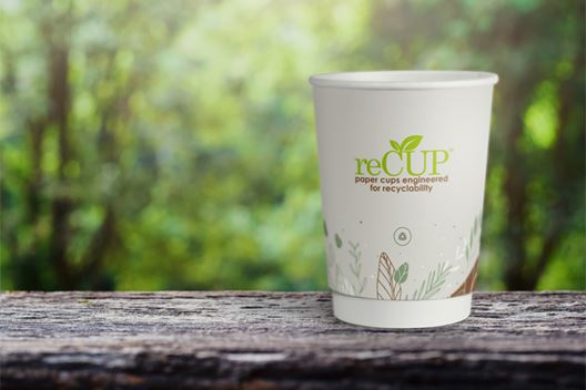 The reCup is a unique type of recyclable paper cup primarily offered by Huhtamaki Cup Print as part of its industry-leading portfolio of custom printed cups. These are paper cups made with EarthCoating® an innovative barrier coating specifically engineered to recycle in mainstream waste facilities.